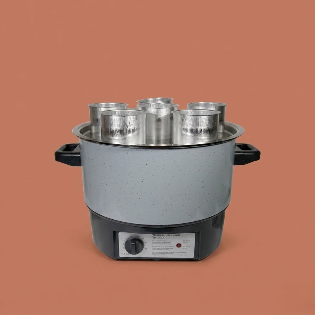 - Le bain-marie T20 avec 6 places, avec une capacité d’environ 1,3 litre de cire par récipient.
