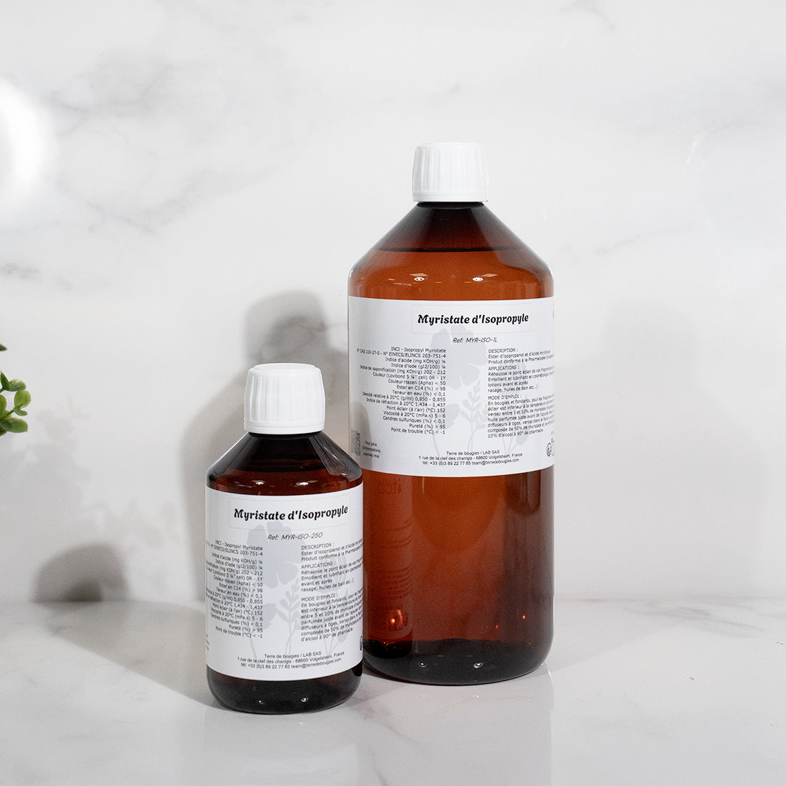 Das Wichtigste, was Sie verstehen müssen, ist, dass Sie eine emulgierende Basis benötigen, um die Moleküle so zusammenzubringen, dass sich die Zutaten nicht trennen. Und dafür schlagen wir Ihnen Isopropylmyristat als Basis für diese Kreation vor. Es ist ein Pflanzenöl, das gefahrlos erhitzt werden kann und in unserem Shop erhältlich ist!