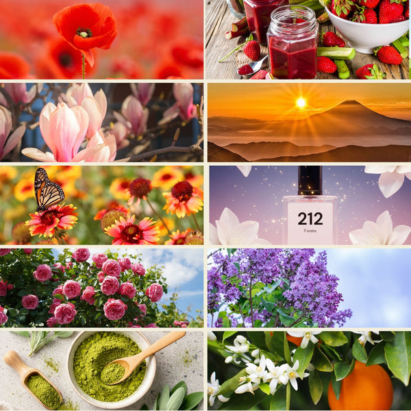Düfte*: Klatschmohn / Rhabarber Erdbeere / Magnolie / Perlmuttsonne / Frühlingsgarten / 212 / Patchouli und Rosen / Flieder / Verdant calm / Orangenblätter.